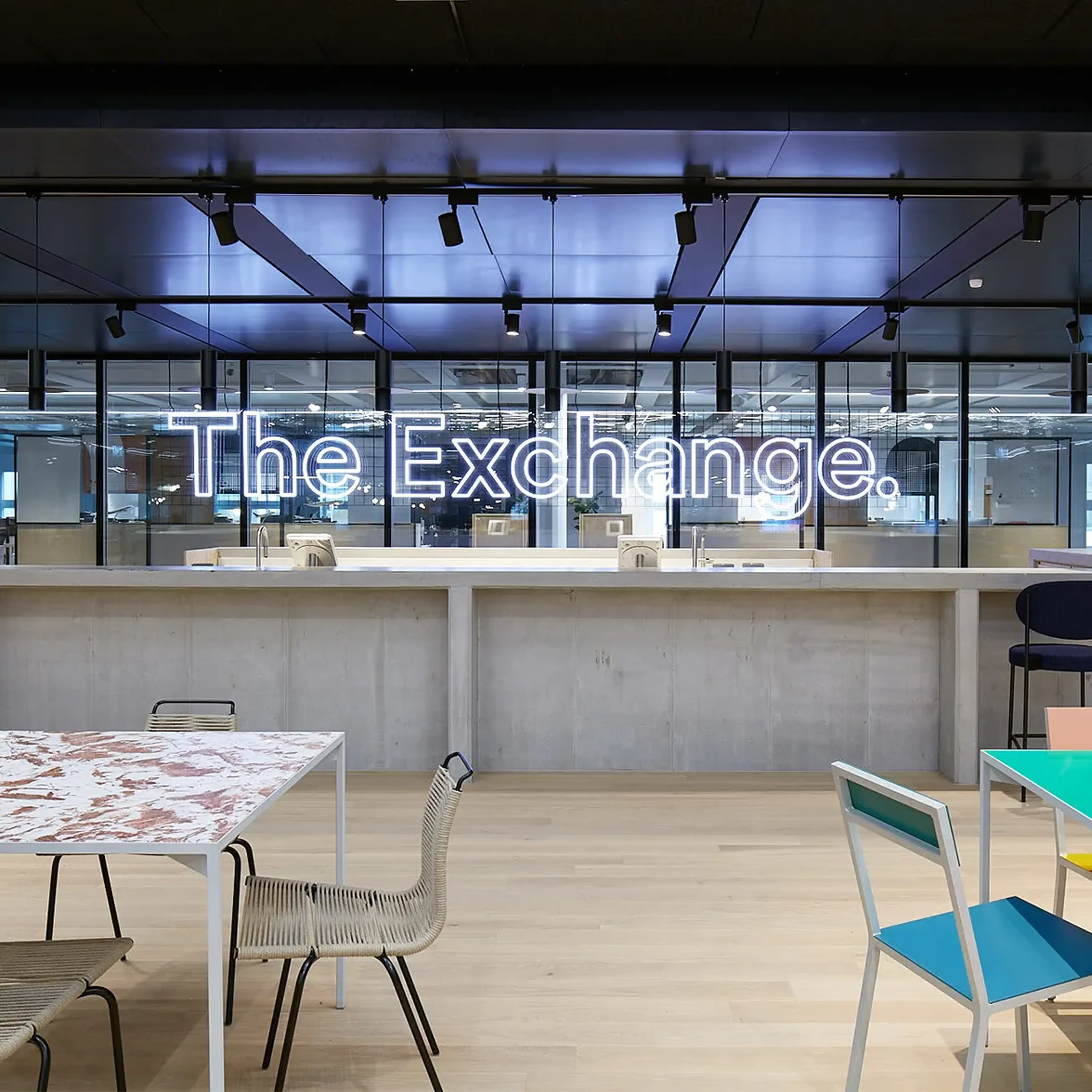 Our office is the former Swiss Stock Exchange building, and it boasts a gym, yoga studio, coffee bar, and plenty of space to meet and foster collaboration.